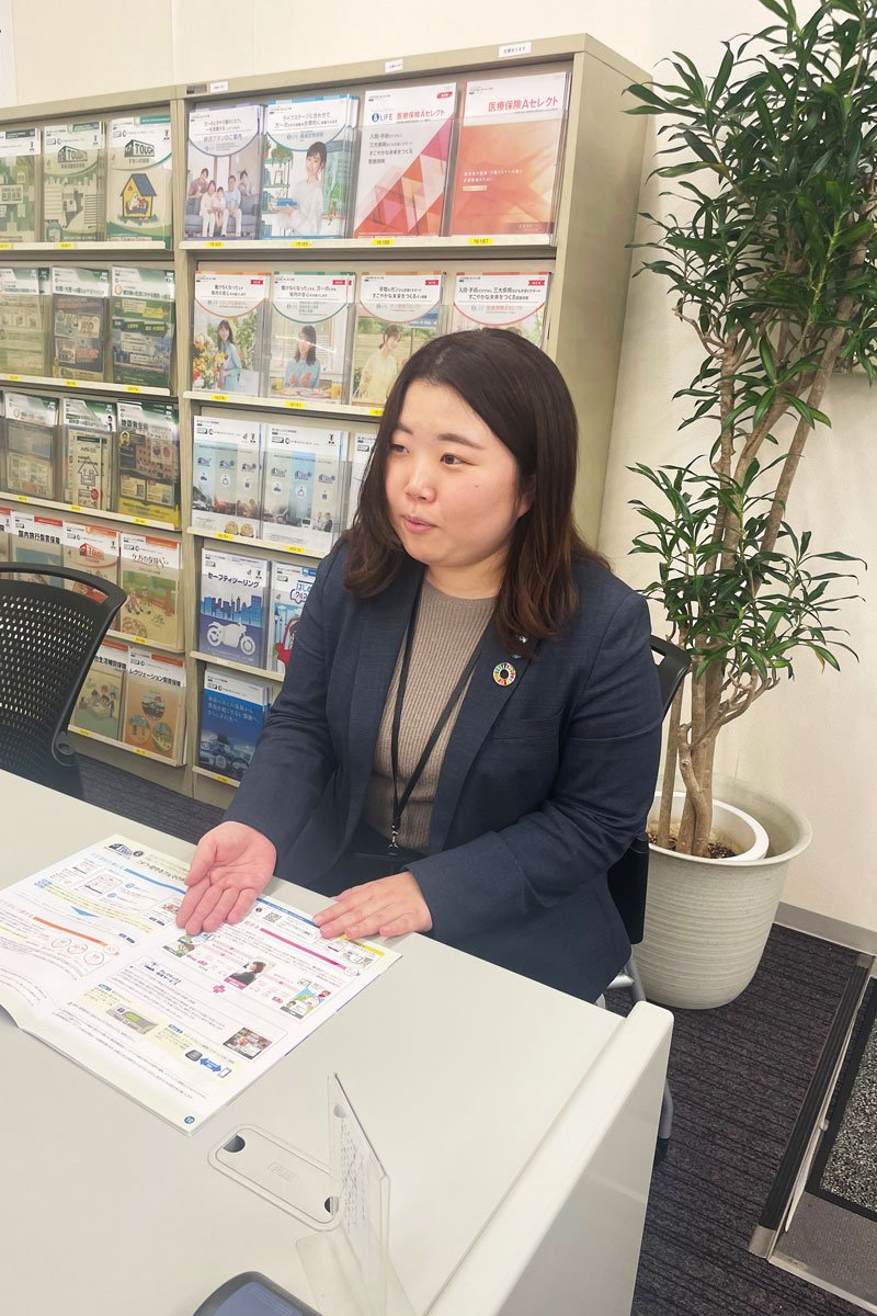 私は主に、公務員や会社員の方に生命保険や資産形成をご提案する生涯設計デザイナーとして、それぞれのお客さまにあった最適な生涯設計プランをご案内しております。生命保険は、家の次に高価な買い物とも言われております。一生涯のパートナーとして長くお客さまに寄り添う仕事ですので、使命感と責任感が必要となります。現在はチームリーダーも務めており、通常業務に加え、チームメンバーが仕事を順調に進められるようにサポートもしています。