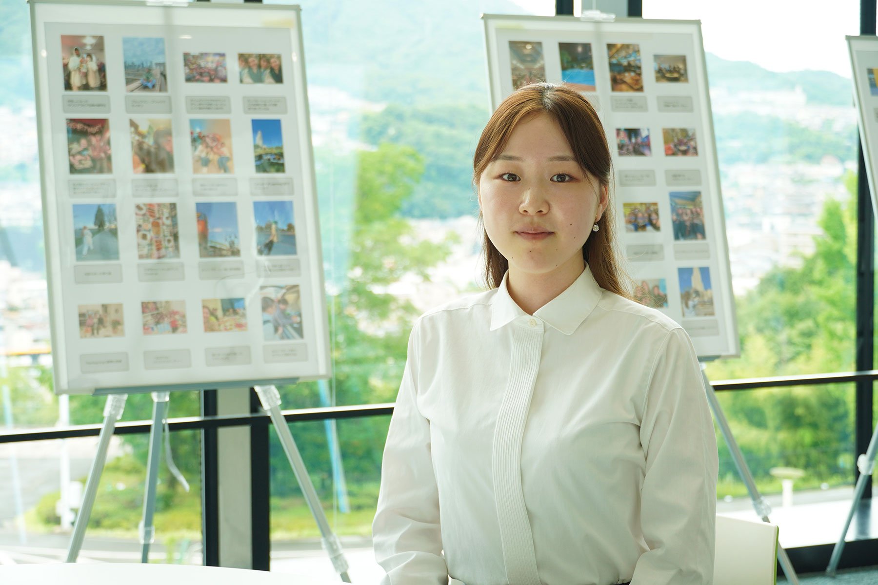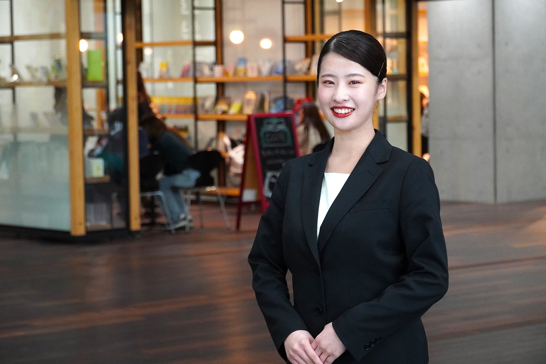 この度、私は日本航空(JAL)の客室乗務職に内定をいただきました。この学科での4年間は語学力の向上にとどまらず、多くの人との出会いを通じて新たな夢を見つけるきっかけとなり、人として私を大きく成長させてくれました。安田女子大学には、学生一人ひとりに寄り添い、最後まで背中を押してくださる先生方がたくさんいらっしゃいます。在学中には困難に直面する事もあるかもしれませんが、失敗を恐れず、自分を信じて挑戦してみてください。この学科での経験は、きっと将来の夢や目標、幅広い選択肢につながります。私自身、ここで得た学びや感性を活かしながら、新たな環境でさらに成長し続けていきたいです。