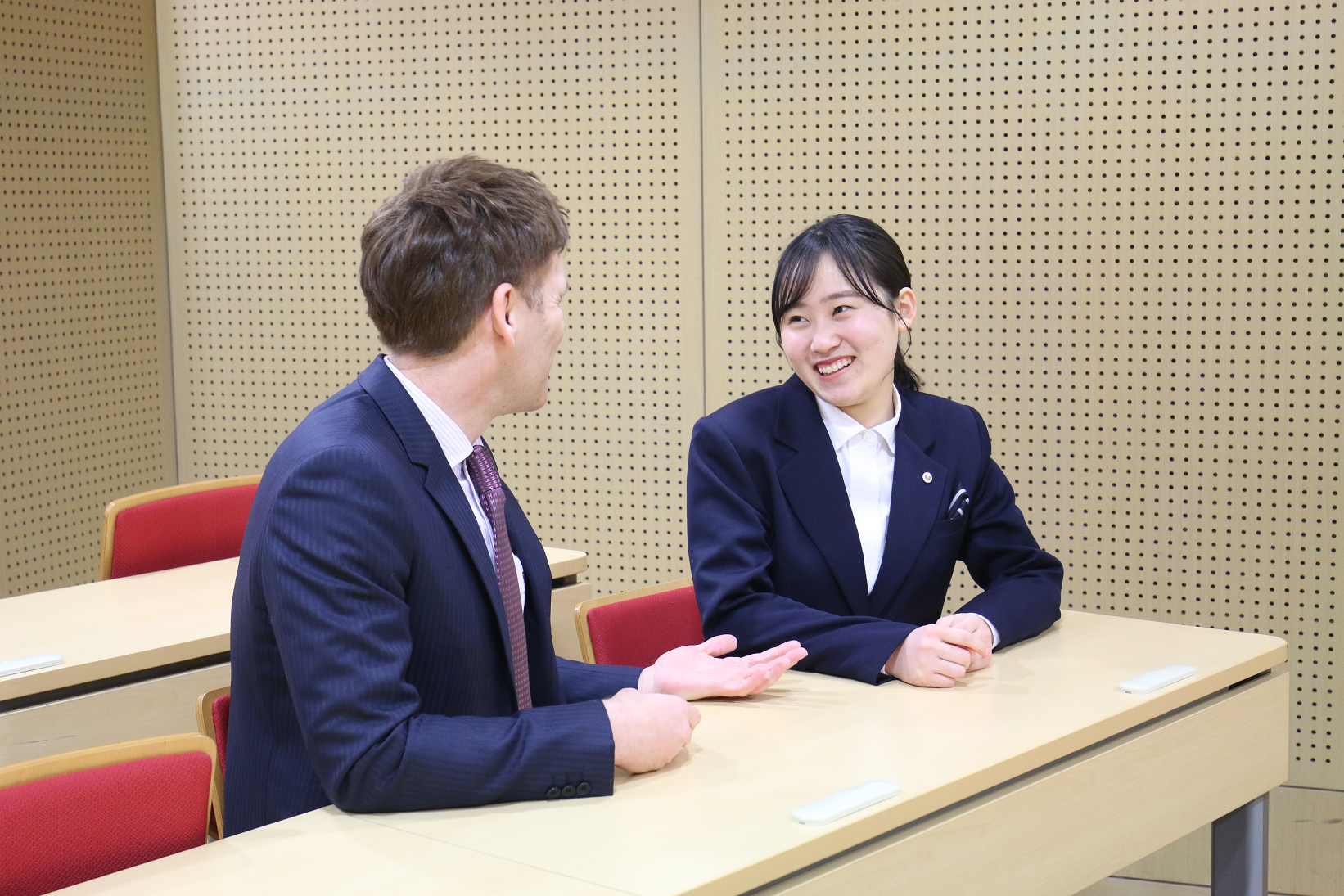 また、学内で提供された航空業界面接対策講座も私にとってはとても大切な経験でした。自分の将来を模索している中で、航空業界に何となく憧れ、興味を持った私を先生は温かく受け止めてくださり、受講生の仲間たちと切磋琢磨していました。講座内でのインターンシップに加え、通常授業のインターンシップへの参加を通して、就職活動の軸が見つかり、最終的には金融業界に就職しましたが、この講座で学んだ相手を思いやる気持ちや、立ち居振る舞いは今の営業の仕事に活かされています。